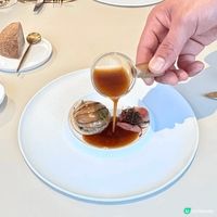 前一排生日同朋友打卡一間米芝蓮⭐⭐餐廳TATE DINING ROOM,而且仲係顏值與美味並存😍, 每一道餸彷如藝術臻品,以頌歌的主題去呈現自然美味,有一種視覺與味覺雙重極致的享受。 TATE 主打法國 x 亞洲元素融合菜,仿效日本對四時轉變的敏銳觸覺,採用季節當造的新鮮食材,講究食物的質量、味道及烹調細節,創造藝術美饌✨。除了固定餐牌,TATE 亦推出素食menu,以最優質的時令食材貼心照顧追求健康飲食的素食者。 試食lunch set: 1️⃣鮑魚頌 2️⃣蘑菇頌 3️⃣扇貝頌 4️⃣烤鴨頌 5️⃣櫻花頌 我最中意蘑菇頌,溫柔慢燉香菇搭配糯米和蘑菇碎,淋上素鮑汁,再輔以酸甜小野菜醒神開胃。扇貝頌亦都好出色,香煎扇貝肉火候恰到好處,邊緣起咗一層微酥的焦圈,但扇貝的肉質卻依然保持鮮嫩且彈牙,配上紫蘇脆片和金桔醬,清新美味。最驚喜當然係最後的甜品車,幸福感和儀式感滿滿💕! 環境: 5分 一入門口就被一種高級又溫柔的氛圍包圍,暖調燈光,裝修超有藝術感,感覺自己瞬間變成公主👑 ,每個角落都美如畫,係影相打卡的絕佳地點!📸 菜品: 4.5分 顏值與美味兼備,真係精緻到唔捨得食👏 !味道清淡,以健康理念為主,每一啖都有驚喜🤤。 服務: 5分 侍應超級細心,每道餸都會詳細介紹💯。 店名: TATE DINING ROOM 地址: 香港中環荷李活道210號 #雙聚嚐月