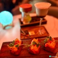 J.Moon除了以環境打卡出名之外,特調雞尾酒都非常出名。12款星座特調雞尾酒都詮釋星座性格,例如熱情奔放的「白羊座」以辣椒龍舌蘭與佛手柑蜜糖漿帶出火辣甜香;溫柔的「巨蟹座」以伯爵茶威士忌搭配貝禮詩奶泡;愛冒險的「射手座」以山葵伏特加混搭梅酒蜜瓜,非常獨特
