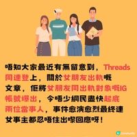 唔知大家最近有無留意到,Threads同連登上,一篇關於女朋友出軌嘅文章呢?男事主將女友出軌嘅過程分享,最後仲將女朋友同出軌對象嘅IG帳號爆出(貼文已被刪除),引來唔少網民話要起底公審佢哋,事情愈演愈烈最終連女事主都忍唔住出嚟回應呀!一齊睇下事件經過(詳見圖3-5) 事件被爆出之後當然發酵得好迅速啦,唔少網民都話要起底呢對「狗男女」,並稱要挖出佢哋屋企人嘅資料去公審佢哋!呢件事喺當時幾日熱度仲超越埋奧運添呀, 女方出軌對象仲話要報警,告男事主揭露他人私隱,就喺事情睇落一面倒之際,飽受困擾嘅女事主,終於忍唔住整咗15張圖作出回應!(詳見圖7-15) 女事主回應後,截至琴日,男事主都仲有作出回應(貼文已被刪除),但係網民對於佢嘅回應完全唔埋單呀!因為男方回應中,不斷講出自己買過啲咩畀女朋友,就連幾十蚊嘅萬能插頭都講,唔少網民都話佢 「好小家」(詳見圖17-19) 由一開始嘅一面倒,到依家嘅各打五十大板,呢件事真係360度大翻轉呀, 唔知大家對於呢件事又有咩睇法呢? 又覺得公開對方個人社交媒體帳號,係唔係一個明智嘅決定呢? 🌟歡迎留言話我知你嘅意見~ 資料來源:Threads #攻略 #情感 #城中熱話 #熱話 #網上熱話 #討論區 #情侶 #愛情 #外遇 #學界