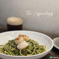 見「香港café關注組」唔少組員都力推呢間𝑻𝒉𝒆 𝑪𝒐𝒇𝒇𝒆𝒆𝒐𝒍𝒐𝒈𝒚 小店座位數目唔多 我地3點左右去都要等大概半個鐘先有位 ♡‧₊˚ 𝗦𝗼𝘂𝗿𝗱𝗼𝘂𝗴𝗵 $108 有牛油果蟹肉/ 三文魚兩款揀 我地揀咗後者~ 炒蛋滑嫩 同三文魚份量都比到足🥹🙌🏻 唔似其他café果啲細細份 滿意(๑´`๑)♡ ♡‧₊˚ 𝗣𝗲𝘀𝘁𝗼 𝗣𝗮𝘀𝘁𝗮 𝘄𝗶𝘁𝗵 𝗦𝗰𝗮𝗹𝗹𝗼𝗽𝘀 $118 帶子鮮甜肥美 每條意粉都沾滿青醬 乾番茄嘅微酸味道有助減低膩感 ♡‧₊˚ 𝗘𝗮𝗿𝗹 𝗚𝗿𝗲𝘆 𝗖𝗵𝗲𝗲𝘀𝗲𝗰𝗮𝗸𝗲 $55 一心想試佢嘅𝒎𝒂𝒕𝒄𝒉𝒂 𝒄𝒉𝒆𝒆𝒔𝒆𝒄𝒂𝒌𝒆可惜賣曬了😣 不過𝒆𝒂𝒓𝒍 𝒈𝒓𝒆𝒚都好味 質地厚實但口感幼滑 芝士味濃郁 茶味香亦夠突出 不過都幾濟下 要配埋咖啡食😛 #CAFE#Coffeeoftheday#UCreator#打卡美食#香港美食#銅鑼灣