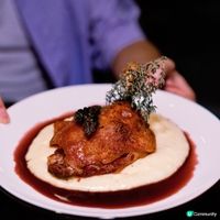 另一創意之作是「烤焗西班牙油封鴨腿」,鴨肉經油封後更為濃郁柔軟,加上鴨腿表面烤至微焦香脆,包覆住嫩滑鴨肉,啖啖肉超多汁!配上入口綿滑的薯蓉及特調藍莓醬,後者能夠帶出鴨肉香味同時平衡油膩感,相得益彰,證明大廚對食材組合拿捏得宜。