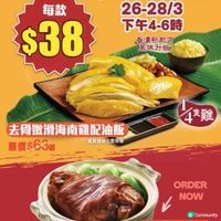 $38紅燒原隻豬手+去骨海南雞配油飯