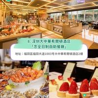 唔少香港人都會趁假期同子女或另一半一齊上深圳吃喝玩樂,而深圳自助餐價錢實惠,同時可以任食高質海鮮美食烤肉!今日小編就精選10間社群U Creator推介高CP值深圳自助餐,無論慶生定係任何重要日子都適合去享受下! ----------------- 【Plan行程法寶】輕鬆成為旅行Chill Guy 「Chill Guide旅遊指南」為您整合社群最人氣旅遊攻略!有齊日本、深圳、台灣、澳門、 韓國、泰國、越南等熱門旅遊地區嘅行程懶人包,包括熱門同隱世吃喝玩樂行程,無論您係J人定P人都可以chill住玩! {{hket:url-hyperlink display="按此參考行程plan"}}https://ulapp.hk/tjxef{{/hket:url-hyperlink}} ----------------- 1️⃣ {{hket:url-hyperlink display="光明溫德姆至尊酒店「旋轉餐廳」"}}https://ulapp.hk/q1yhy{{/hket:url-hyperlink}} 想享用美食同時高空飽覽深圳光明區景緻,不如去光明溫德姆至尊酒店23樓嘅旋轉餐廳歎海鮮自助餐!餐廳故名思義會帶客人以動態視角緩慢旋轉,360度靠窗觀賞迷人市區風景!餐廳提供鮮甜足料海鮮粥、三文魚刺身之外,仲有較罕見嘅魚子刺身。海鮮刺身控一定食得滿足! 地址:創投路368號光明溫德姆至尊酒店23樓 ----------------- 2️⃣ {{hket:url-hyperlink display="東海朗廷酒店「Silk」"}}https://ulapp.hk/2dru7{{/hket:url-hyperlink}} 去福田區附近玩樂過後,不妨去東海朗廷酒店Silk餐廳歎餐豐盛嘅自助晚餐,為一日假期畫上完美句號!餐廳匯集一系列中西佳餚,海鮮種類十分豐富,有必食蒜香黃油焗龍蝦、羅氏蝦、梭子蟹、扇貝等美食全部任食唔嬲,仲有鐵板燒鵝肝、扒類,而且晚餐人均低至HK$359/位,CP值超高! 地址:福田區深南大道7888號 {{hket:url-hyperlink display="預訂東海朗廷酒店Silk "}}https://www.langhamhotels.com/sc/the-langham/shenzhen/dine/silk/{{/hket:url-hyperlink}} ----------------- 3️⃣ {{hket:url-hyperlink display="深圳鹽田凱悅酒店「咖啡廳」"}}https://ulapp.hk/q55zd{{/hket:url-hyperlink}} 鍾意燒烤嘅您去到「深圳鹽田凱悅酒店咖啡廳」就可以盡情大吃特吃啦!唔單止體驗五星級酒店望住海景食buffet,而且主打高質海鮮同燒烤!無論係冰鎮海鮮、烤海鮮、烤肉都可以食到,食到夠仲可以任飲無酒精香檳同食甜品,輕鬆回本! 地址:鹽田區海景二路1025號6層凱悦酒店30樓 ----------------- 4️⃣ {{hket:url-hyperlink display="龍華希爾頓逸林酒店「“開”全日餐廳」"}}https://doubletree.hilton.com.cn/zh-hk/hotel/shenzhen/doubletree-shenzhen-SZXDJDI/dinings.html{{/hket:url-hyperlink}} 龍華區除咗行壹方天地之外,唔夠玩可以入住附近嘅「龍華希爾頓逸林酒店」。酒店裡面嘅“開”全日餐廳有齊豐富海鮮同中、日、東南亞等多國熱食美饌任食,適合入場邊食邊放鬆。而且依家正值大閘蟹季,可以食埋大閘蟹及蒜蓉蒸小青龍,食足4小時,平均低至HK$290/位,超抵食! 地址:龍華區東環二路8號 ----------------- 5️⃣ {{hket:url-hyperlink display="福田香格里拉「Café Zen」"}}https://ulapp.hk/ltk4z{{/hket:url-hyperlink}} 福田區都可以食到香格里拉嘅buffet!位於「福田香格里拉大酒店」1樓嘅Café Zen主打即蒸海鮮,包括現蒸龍躉、招牌高壓鍋生蠔,用高壓鍋清蒸保留原汁原味,唔怪得每個客人嚟親都話要食!龍蝦都係即時喺缸入面新鮮撈起,每位客人限食一隻。咁多新鮮海鮮任食,只需約HK$500/位,推介俾每一位海鮮控! 地址:益田路4088號深圳福田香格里拉大酒店1樓 {{hket:url-hyperlink display="官網預約自助餐"}}https://www.shangri-la.com/cn/shenzhen/futianshangrila/dining/restaurants/cafe-zen/{{/hket:url-hyperlink}} ----------------- 6️⃣ {{hket:url-hyperlink display="金茂深圳JW 萬豪酒店「Café Chinois」"}}https://www.marriott.com.cn/hotels/szxjw-jw-marriott-hotel-shenzhen/overview/{{/hket:url-hyperlink}} JW萬豪酒店自助餐都係其中一間最受港人歡迎嘅深圳酒店自助餐。深圳JW 萬豪酒店位於福田區,除咗可以任食現切刺身同海鮮之外,大閘蟹季仲可以食到當季大閘蟹,仲有即開生蠔、紅酒藍莓鵝肝同Cocktail、氣泡酒任飲,鍾意食自助餐嘅您唔可以錯過! 地址:福田區深南大道6005號金茂深圳JW 萬豪酒店2樓 {{hket:url-hyperlink display="官網睇詳情 "}}https://www.marriott.com.cn/hotels/szxjw-jw-marriott-hotel-shenzhen/overview/{{/hket:url-hyperlink}} ----------------- 7️⃣ {{hket:url-hyperlink display="深圳大梅沙京基洲際度假酒店"}}https://ulapp.hk/bmzrs{{/hket:url-hyperlink}} 深圳大梅沙京基洲際度假酒店距離地鐵大梅沙站10分鐘路程或者搭直通巴可到達,附近有大梅沙海濱公園,可以玩一系列水上活動,最適合親子兩日一夜前來短度假!酒店入面嘅自助餐餐廳除咗有齊小龍蝦等海鮮任食之外,仲有埋火鍋同燒烤類美食,一餐滿足您火鍋、燒烤同海鮮三個願望! 地址:鹽田區大梅沙鹽葵路9號 {{hket:url-hyperlink display="官網查看預訂詳情 "}}https://www.ihg.com/intercontinental/hotels/cn/zh/shenzhen/szxdr/hoteldetail{{/hket:url-hyperlink}} ----------------- 8️⃣ {{hket:url-hyperlink display="深圳大中華希爾頓酒店「念全日制自助餐廳」"}}https://www.hilton.com.cn/zh-hk/hotel/shenzhen/hilton-shenzhen-SZXSFHI/index.html{{/hket:url-hyperlink}} 深圳大中華希爾頓都係其中一間市區高CP值自助餐。酒店位於福田區商圈附近,吃喝玩樂都方便!餐廳提供任食即煎新西蘭牛扒、老虎蟹、刺身,仲有晚市限定即做鵝肝、避風塘及麻辣等口味小龍蝦任食唔嬲,而且性價比都高,自助晚餐最平HK$228/位就食到! 地址:福田區福田大道1003號大中華希爾頓酒店2樓 ----------------- 9️⃣ {{hket:url-hyperlink display="艾沐春天"}}https://ulapp.hk/f9u7h{{/hket:url-hy