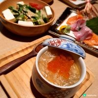 🥗先付 - 日本豆腐冰菜沙律 🦪加48蚊仲可以加配北海道厚岸產生蠔 熟我嘅朋友都知我好鍾意食豆腐 再嚟冰菜 好少見餐廳用呢隻菜做沙律 口感特別 夠爽口 唔講唔知 冰菜可以抗氧化 控制血糖 至於🦪 creamy 🦀蒸物 - 蟹肉海鮮茶碗蒸 一揭開蓋就有魚籽 超多蟹肉絲 蛋蒸得好滑 入面仲有菇同蝦 好足料 蟹味都算濃郁嘅 🐟「真」直送旬刺身3點 🦐牡丹蝦 🧡三文魚 🩷天然寒鰤 加68蚊加多客「山幸」吞拿魚三點 刺身整體新鮮 重點大力推一定加68蚊 食晒吞拿魚3個部位 魚腩夠晒油🤤🤤🤤 🍢燒物 - 串燒2客 有3款串燒揀 明太子雞翼串 牛舌串 免治雞肉串 嗌2個set 所以每樣都整番串 雞翼double上 明太子雞翼大癲 多到爆餡 牛舌夠爽 唔韌 再沾埋月見汁 好味 免治雞肉juicy 加48蚊整件香煎鵝肝配米紙 米紙脆卜卜 筷子功差少少就啪一聲夾爛🤣 食落口 一咬米紙即爛 鵝肝又溶溶哋 好😈 🍤天婦羅 - 北海道松葉蟹足天婦羅 真係蟹腳炸成天婦羅 唔係蟹棒打發你 另外仲有南瓜 蕃薯同埋💚辣椒 炸粉薄 食完唔覺油 主菜 🦀北海道松葉蟹日式味噌鍋 咁凍嘅天氣 配個熱辣辣嘅鍋 湯底濃郁 跟鍋有碗白飯 撈埋食夠滋味 蟹已經拆咗半殼 方便食 🍣時令壽司拼盤 5件壽司 3粒卷物同1嚿玉子 (已經有埋wasabi喺壽司入面㗎喇) 賣相好靚 🍲御碗 - 蜆肉日式味噌湯 震驚😱 大大粒蜆肉喺湯底waiting for you 🍦甜品 - 朱古力雪糕 簡單一個花形托住雪糕作結 🍹飲品 巨峰提子乳酸梳打 白桃乳酸梳打 2款梳打都打卡able 飲落仲要唔係藥水味 btw 成餐咁豐富 要開支純米大吟釀助吓慶 300ml 先加48蚊 抵呀 我哋嘅飲法係溝埋落梳打度 出奇地夾喎 大家可以試吓丫 #日本菜 #壽司 #刺身 #鮨樂