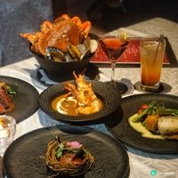 除此之外,以大澳花膠和雲南火腿慢火熬煮的花膠雲腿燉雞湯,好鮮甜;黑松露銀耳鮮百合炒和牛粒 -和牛經過快炒後外香內嫩,配搭幽香滿溢的黑松露醬、營養豐富的銀耳,以及清甜多汁的本地新界種植之新鮮百合,吸收了和牛豐腴的脂香;避風塘炒龍蝦海鮮燴意大利飯-龍蝦在鑊中翻炒,加入蒜蓉、豆豉與辣椒調味,交織出層層香氣,搭配