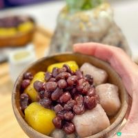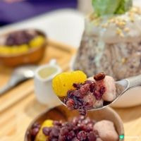 甜品有青提子乾、杞子、花生及芝麻碎,口感冰涼豐富。