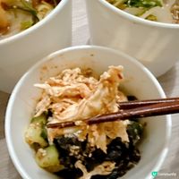 淋上酸辣醬汁,伴著青瓜絲、炸豌豆、花生、芝麻等配料,又辣又麻,味道多重。