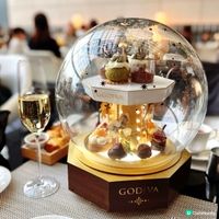 下午茶的亮點當然就是甜品!水晶球造型的甜品層架閃亮夢幻,旋轉木馬轉盤上盛載著各款甜點,例如日式芝麻 GODIVA 朱古力芝士蛋糕、紅莓 GODIVA 朱古力奶凍、GODIVA 朱古力沾士多啤梨、GODIVA 松露黑朱古力、檸檬馬鞭草 GODIVA 柚子朱古力撻等,每款都很精緻。加上打卡的裝飾擺設,特別有聖誕氣氛~食客更可無限品嚐 GODIVA 黑朱古力和士多啤梨軟雪糕