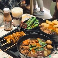餐廳內的車仔檔裝飾超懷舊,忍不住要打個卡 我點了至尊麵餐($72)超豐盛!豬手彈牙、雞翼、豬皮及豬腸肥美入味、豬紅及魚蛋也彈牙、還有軟腍入味的白蘿蔔(必食!)超級豐富!不是太能吃辣所以選了小咖喱香辣 朋友點了有營有素($56)流心蛋、豆卜、紫菜、冬菇、白蘿蔔,這個餐全是素食,不過可以加點餸菜,所以加了牛腩及白蘿蔔🤣沒錯這家白蘿蔔超級軟腍入味,牛腩也是入口即化的那種!湯汁選了中辣咖喱汁,超惹味! 永年士多x香港鬼怪百物語聖誕聯承x辣串COMBO($39) 聖誕限定,可一次過試4款咖喱辣串,有燒賣、魚蛋、牛柏葉及豬腸,超適合與朋友分享 薑汁豆花紅豆冰(+$15)朋友點的,試了幾口,微辣味甜的薑汁豆腐花想不到與紅豆冰也出奇地夾,還比一般的紅豆冰沒有那麼甜 樽仔奶茶(+$17)我最愛的港式樽仔奶茶! 但略甜 #永年#車仔麵#廟街#油麻地警局#油麻地#UCreatorHK#香港美食#香港地道美食