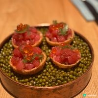 魚子醬口感綿密柔順,頂部以三文魚籽點綴,帶來鹹甜交錯的味蕾體驗。