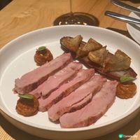 羊肩肉配鷹嘴豆餅、茄子忌廉、開心果莎莎青醬 Lamb Shoulder with socca, eggplant cream, and pistachio salsa verde (HK$258)
