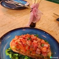 最近到在港島區有5間分店的Ask For Alnozo品嚐意大利菜🇮🇹Set Dinner $298起有3道菜,前菜及主食都有好多款任選👍🏻主食還有少見的意式烤乳豬,令第一次試的我們都感到好驚喜! - 🍞點餐後首先送上兩款不同的烤麵包 一款有核桃 另一款有淡淡的蕃茄味 配上黑松露醬更好味~ ⟡ Starter ⟡ 🍅 𝗧𝗼𝗺𝗼𝘁𝗼 𝗕𝗿𝘂𝘀𝗰𝗵𝗲𝘁𝘁𝗮 蒜蓉烤酸種多士烤得非常香脆 融入橄欖油及蒜蓉 面頭再搭配粒粒番茄 🐟 𝗦𝗲𝗮𝗿𝗲𝗱 𝗧𝘂𝗻𝗮 吞拿魚肉質鮮美 口感比較柔軟 怕腥的可配檸檬汁一同食用 ⟡ Mains ⟡ 🍴𝗣𝗿𝗮𝘄𝗻 & 𝗔𝘀𝗽𝗮𝗿𝗮𝗴𝘂𝘀 𝗥𝗶𝘀𝗼𝘁𝘁𝗼 經典的意大利燉飯配上龍蝦忌廉湯醬 飯粒彈牙 香濃又creamy 配菜有蘆筍 紅椒 大蝦 好足料 🍴𝗜𝘁𝗮𝗹𝗶𝗮𝗻 𝗣𝗼𝗿𝗰𝗵𝗲𝘁𝘁𝗮 令人最期待的意式烤乳豬‼️ 乳豬的表皮烤的香脆 肉質層層分明🐷 最鍾意全份乳豬都是無骨 帶有半肥瘦肉 配薯蓉及蘑菇汁 雖然整體比較鹹 但未試過的真係建議一試! ⟡ Desserts ⟡ 🤎𝗔𝗹𝗻𝗼𝘇𝗼’𝘀 𝗦𝗶𝗴𝗻𝗮𝘁𝘂𝗿𝗲 𝗧𝗶𝗿𝗮𝗺𝗶𝘀𝘂 提拉米蘇實物比圖片更大件 口感順滑 酒味香濃 不愧為招牌甜品! 🤍𝗪𝗵𝗶𝘁𝗲 𝗖𝗵𝗼𝗰𝗼𝗹𝗮𝘁𝗲 𝗣𝗮𝗻𝗻𝗮 𝗖𝗼𝘁𝘁𝗮 平時的意式奶凍奶味較重,這款則被白朱古力的甜味覆蓋了奶味,幾特別~ 大坑分店好有氣氛🍷適合聚餐約會 菜式整體都好高質 無論係想聚會定品味意大利菜 都係一個好選擇✨ - 📍Ask For Alonzo (大坑) 大坑蓮花宮西街11號地舖 分店: 灣仔、上環、跑馬地、鰂魚涌 #西餐廳#UCreator#港島美食#CAFE#大坑美食#銅鑼灣美食#灣仔美食#上環美食#意大利菜 #假期推介#雙聚嚐月#夏日炎炎啤啤佢