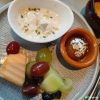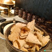 除了魚面頰鮮湯、黃辣椒烤雞、烤羊肉串等,LEELA的招牌菜式煙燻牛油雞都是必試,搭配素食牛油芝士和蔬菜咖喱丸子,非常豐富之餘,煙燻和牛油香突出,令人回味。其他分享菜式,包括勒克瑙香脆薯仔籃和香料烤雞餅(每位另加$58)、印度烤本地U2魷魚(每位另加$98)。當中蜜糖芝麻烤本地豬排骨(每位另加$188),選用本地華記農場豬肉、克什米爾辣椒和有機蜂蜜烹調而成;全新推出特色甜點印度香料奶茶蛋撻,奶味濃郁但又不會掩蓋蛋的香滑;雜果牛奶雪糕更一口解膩。