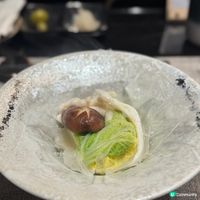 打卡必備的還有前菜 「煙燻磯煮黑梅貝」,上桌時煙霧繚繞,仙氣十足;以及造型精巧的 「愛心鵝肝」,師傅以精湛手藝將鵝肝砌成心形,兼具觀賞性與美味 。