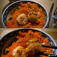 🍽️ 龍亭 (大埔) 📍大埔翠樂街11號美豐花園地下10號鋪 於大埔一間隱世餐廳食omakasae, 今次試左極品海膽和牛龍蝦(十品)$1360 係KK Day 買套餐可加$1 有清酒🍶 🥗 魚子醬煙燻三文魚有機沙律菜卷: 魚子醬三文魚中華沙律配以黑醋,風味極佳。配搭伴碟上的龍珠果和車厘茄,感覺清新鮮甜。 👍🏼墨西哥海膽玉子豆腐: 墨西哥海膽味道柔和,味道唔會太搶,而玉子豆腐則有別於平時市面上既味道,入口有種強烈味噌味道散發係個口度,配上三文魚子進一步增強口感。 🦪塔斯曼尼亞海膽配法國生蠔皇: 生蠔皇蠔身飽滿,肉質鮮甜,加些少檸檬汁🍋送入口,味道一流。 🥚白松露蘭王溫泉蛋: 蘭王溫泉蛋蛋黃濃稠、口感滑嫩,而海膽味道細膩鮮美,口感豐富,配上白松露能帶出獨特香氣,又有柔和既風味。 👍🏼 北海道海膽燒半熟帶子+紫海膽燒慢煮溏心鮑魚: 鮑魚肉質嫩滑彈牙,帶子中心帶半液態熟愁程度,配上海膽醬燒,好食。 🥩澳洲海膽炒極品松本A5和牛: 5成熟肉質嫩滑既和牛,沾上鵪鶉蛋汁,個食法好似壽喜燒一樣。 隨後的飛魚子炒飯 🍛 味道濃郁,為整餐增添了飽腹感。 🍲有大大塊花膠既麵豉燉湯 🦞秘製海肫薔燒澳洲龍蝦: 鐵板海鮮主菜為波士頓龍蝦,色澤鮮艷,外殼紅潤,肉質吃起來十分鮮嫩。炸蒜香蔥拌龍蝦肉,襯托到燒烤味香。 👍🏼加拿大海膽和牛脂炒飯: 又來一大塊海膽係面, 抽子海膽雪葩: 甜品方面,檸檬柚子雪葩,味道清新,解膩一流。生日仲有得送個畫碟,枝蠟燭係餐廳送架,好細心!Thank you! 整體而言,這次的 omakase 體驗讓人感受到廚師的用心,侍應每道菜式都會細心介紹一次,又不停為我地加暖水,服務態度非常好👍🏼 #大埔美食#極品海膽和牛龍蝦#龍亭 (大埔)