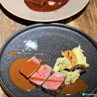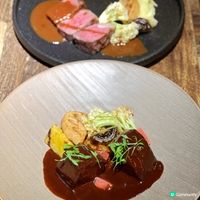 這間西餐廳位於灣仔的彰顯大廈,主打新派法國菜,有一系列的乾式熟成料理及過百款葡萄酒,可熟成豬、羊、牛脷、白鴿等。 . 店內環境寬敞舒適,裝潢以歐洲復古工業風為主,氛圍悠閒中帶點隨性。 . 🔹豪華品嚐菜單 - $598 . 🔸北寄貝撻 爽脆富彈性的北寄貝清甜鮮美,有酸甜平衡的柚子,馬鞭草汁有明顯的檸檬香氣。 . 🔸慢煮日本海參配墨魚慕絲 慢煮海參軟糯又不失嚼勁,有豐富的膠質,有一層清新的青檸寶雲酥,又有爽脆的三文魚籽,又有晶瑩剔透的西米布甸,炭燒白昆布增添天然的甘甜。 . 🔸香煎松阪豬 豐富且平均的油花分佈肥瘦交錯,脆嫩多汁不乾柴,鹹香的味噌醬提起濃郁的肉香,有清爽的青蘋果粒,又有煙肉增添煙燻香氣。 . 🔸龍蝦濃湯 +$48 採用二十斤龍蝦頭長時間熬製,質地濃稠綿滑,鮮甜香醇的龍蝦味,還有股杏仁香。 . 🔸慢煮鴨脾鴛鴦腸焗飯 一絲絲慢煮鴨脾軟嫩多汁,潤腸有獨特的肝臟風味,辣肉腸鹹香帶辣,雜菌增添菌香,還有青檸油平衡膩感。 . 🔸21日乾式熟成西冷牛扒 +$78 150G乾式熟成西冷牛扒的風味比一般牛扒更複雜,有烘烤堅果香氣,軟嫩多汁又保留西冷特有的嚼勁,還有綿密細膩的牛油薯蓉。 . 🔸杜拜朱古力 細密的酥皮絲甜而不膩,幼滑的海鹽焦糖忌廉鹹甜交織,反砂開心果有裹著糖霜的甜脆感。 . 🔸招牌提拉米蘇 +$88 撒滿香濃的朱古力粉,幼滑細膩的馬斯卡彭富奶香,濕潤的手指餅吸飽咖啡酒,旁邊還有杏仁酥片及朱古力石頭。 . 🔹14天雞油熟成牛舌芯 - $368 厚度十足的牛舌芯熟成變得更軟嫩多汁,風味會更加濃郁,切開毫不費勁。 -------------------------- The Victuals 地址: 灣仔軒尼詩道99號彰顯大廈3樓 #UCreatorHK#BESTFOODwithUCreator#多國菜必食#多國菜美食#乾式熟成#法國菜#灣仔餐廳