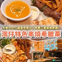 餐廳周進行中~把握機會試唔同餐廳special menu!今次去咗灣仔依間希臘菜,lunch menu低至$148,性價比超高!待應服務仲好熱情🤣 前菜 —— 南瓜球 —— 南瓜湯 前菜包哂小食同湯!南瓜湯綿密,南瓜球配上沙律,咬落鬆化甜香 主菜 —— 牛肉串燒配希臘薯條 $148 —— 雞肉串燒配希臘薯條 $148 牛肉真係必叫!燒到啱啱好medium rare,肉汁鎖住晒,每一口都好juicy入味,肉味濃到好似食緊牛扒!薄餅配上希臘濃乳酪醬,一撈超開胃!雞肉反而就實少少,冇牛肉咁香 套餐仲包埋daily dessert加咖啡/茶 📍 Santorini Steakhouse by Panos SSP (灣仔) 灣仔皇后大道東202號QRE Plaza 5樓 ▫️▫️▫️▫️▫️▫️▫️▫️▫️▫️▫️▫️▫️ 🌟推薦指數:9/10 {{hket:campaign display="浪漫星空約會"}}{{/hket:campaign}}#灣仔美食#灣仔#餐廳推介#restaurantweek#打卡美食