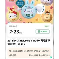 去7-11買賀年禮盒時,見到有新嘅印花換領,又有Sanrio呀!6位超人氣Sanrio角色為大家送上祝福,包括 :Hello Kitty、My Melody、 Kuromi、Cinnamoroll、Pompompurin同Minna no Tābō!🤩🤩🤩 ✨️8款Sanrio characters x Rody跳跳馬開運不倒翁公仔 都超萌呀🥰! 另有隱藏版閃爍Kuromi X Rody及7-Eleven 應用程式限定版郁郁耳Cinnamoroll X Rody隆重登場🥳! 而抱抱咕𠱸同電腦枱墊勁啱你嘅居家生活添🫶! 💕全套「開運不倒翁公仔系列 」共有8款,其中包括隱藏版閃爍 Kuromi X Rody跳跳馬開運不倒翁公仔同7-Eleven 應用程式限定版郁郁耳Cinnamoroll X Rody! 我就抽中咗 💛Hello Kitty X Rody 開運不倒翁公仔 (大吉) 🩵Cinnamoroll X Rody 開運不倒翁公仔(健康) 🎀💻而抱抱咕𠱸同電腦枱墊就有Hello Kitty、Kuromi、Cinnamoroll同Minna no Tābō(大口仔)! ‼️我就揀咗Hello Kitty 抱抱咕𠱸同大口仔電腦枱墊 大家都快啲去換購喇! 💥開運不倒翁公仔系列 」換購詳情: 【電子印花】由即日起至2026年3月20日止,儲齊 20張電子印花,即可免費隨機換購「開運不倒翁公仔系列 」1 件(限量 5,000件,數量有限,先到先得);或儲齊 4張電子印花加$65,即可隨機換購1件;或儲齊 6張電子印花加$108,即可隨機換購2件。 【實體印花】由即日起至2026年3月20日止,儲齊 4張實體印花加$65,即可隨機換購「開運不倒翁公仔系列 」1 件;或儲齊 6張實體印花加$ 108,即可隨機換購2件。 【yuu 會員專享優惠】由即日起至2026年3月17日止。兌換日期由由即日起至 2026 年3月20日止。以 8,800yuu 積分加$28,即可隨機換購「開運不倒翁公仔系列 」1 件。 💥「抱抱咕𠱸」 推廣活動詳情: 由即日起至3月17日,於 7-Eleven 分店*任何消費#加$59,即可換購「抱抱咕𠱸」 1件。 【yuu 會員專享優惠】 推廣日期由即日起至3月17日止。兌換日期由即日起至3月20日止。以 8,000 yuu 積分加$19,即可換購「抱抱咕𠱸」 1件。 💥「電腦枱墊」推廣活動詳情: 由即日起至3月17日,於 7-Eleven 分店*任何消費#加$99,即可換購 「電腦枱墊」 1件。 【yuu 會員專享優惠】推廣日期由 由即日起至3月17日止。兌換日期由即日起至3月20日止。以 8,000 yuu 積分加$59,即可換購「電腦枱墊」 1件。 #7ElevenHK#7ElevenMacau#儲印花#儲yuu分#SanrioHK#Sanriocharacters#Rody#Rody跳跳馬 @7elevenhk