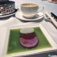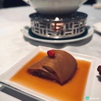 創意甜品「杏仁豆腐小籠包配薑味朱古力醬」更是一大亮點,不止賣相精緻可愛,師傅將滑溜杏仁豆腐包裹於小籠包造型的忌廉慕絲中,搭配濃郁的薑味朱古力醬,甜而不膩。