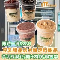 新加坡30年老字號「Jollibean」由即日起至1月31日推出「日日好價$28」,元朗Yoho Mix分店限時每日都有指定口味嘅桶裝甜品大特價,均一價$28 星期一:椰汁紅豆桃膠 星期二:鮮芋泥豆腐花 星期三:黑糖珍珠西米露 星期四:金秋冰糖燉雪梨 星期五:山系豆腐花(進山,百合) 星期六:白玉紅豆燒仙草 星期日:紫米西米露
