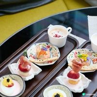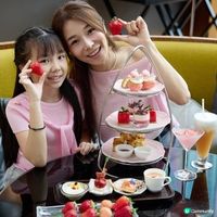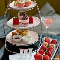 經典英式三層下午茶放置了多款精緻甜點,例如薄荷士多啤梨慕絲番石榴士多啤梨泡芙黑朱古力士多啤梨意式奶凍士多啤梨及意大利芝士配川椒塔可餅。無限量供應的士多啤梨軟雪糕亦是下午茶的重點之一。