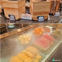 除了生猛火鍋食材,這裡的熟食自助區簡直是另一個震撼眼球的戰場!首先是無限供應的清蒸大閘蟹,每隻均由專人精心挑選以鎖住鮮味,一拆開蟹蓋即可見到金黃色的蟹粉甘香豐腴,蟹肉鮮甜且層次分明,在非蟹季(2月)依然能大快朵頤,絕對是回本的首選。