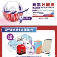 嚟屈臣氏買牙齦適指定牙膏4支滿$150,即送AXE Supra洗衣珠2件、農心辛辣麵1件、倩絲袋裝面紙1件、皇冠衛生紙10卷、天然谷殻纖維環保砧板1件! #優惠#折扣#折扣優惠#免費試用#著數#限時優惠#開倉#清貨