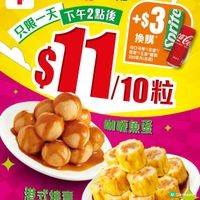 一連7日的「燒賣魚蛋增量優惠」開始啦!由即日至3月3日,下午2點之後在7仔食檔叫一份燒賣魚蛋即刻自動升級增量50%!由原本$18/10粒升級為$18/15粒!