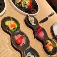窩夫與蝦子餅之前光顧過佐敦的「龍亭」,印象很好,知道它在尖沙咀山林道開了新分店,決定再訪。 新分店位於18樓,景觀開揚,非吧枱位置可以欣賞到日落美景。 點了特價每位$898的「鵝肝龍蝦1++韓牛」套餐,共有14道菜。 還點了一支梅酒,喝梅酒當然要加冰塊,中和一下甜度和酒精濃度。 食物來了,煙挪威三文魚有機沙律菜卷以冰凍的金碟上桌,甚具氣派,沙律菜新鮮爽脆,可蘸碟上的黑醋和中華沙律醬來吃。 接著一次過來三道菜,分別是熟成挪威三文魚牛油果他他、醋漬日本三色蔥及醬油漬三文魚頭軟骨海草昆布,三文魚頭軟骨平時較少機會吃到,爽口入味,醋漬日本三色蔥帶著濃濃的洋蔥香味,酸酸的很開胃。 窩夫的時令極品刺身兩品選了時令生蠔和海膽,海膽份量不少,口感軟滑,鮮甜不腥。生蠔上的蝶豆花泡沫遇上檸檬汁會變色,十分有趣。生蠔不算太大隻但勝在夠飽滿,而且非常鮮甜。 白松露魚子醬蘭王溫泉蛋依職員指示拌勻才吃,白松露的香加上蛋香,十分滋味。 鐵板海鮮兩品的虎蝦和白鰻,虎蝦的蝦味濃,蘸龍蝦汁令蝦味再昇華,白鰻厚肉無骨,肉質有彈性。 另一份鐵板海鮮兩品選了慢煮鮑魚和日本元貝,鮑魚經過慢煮才燒,特別腍和入味,加上炸蒜更加惹味,日本元貝的火候控制得很好,配上黃瓜,味道、口感和營養都更豐富。 蛋白菠蘿慕絲鵝肝多士共有四層,職員建議四層一起吃,還細心地提供全新的濕紙巾。 印象中第一次喝加了花膠的日式湯,鰹魚湯裡還有昆布和豆腐絲,配料不少,味道不錯。 韓牛薄燒約五成熟,油脂不會太多,肉味濃,可按個人口味配竹炭鹽、山葵和炸蒜來吃,最後以櫻桃蘿蔔解膩。 鐵板黑松露海鮮炒飯竟然有紫海膽,軟滑鮮甜,太驚喜太滿足了,還鋪滿三文魚籽和蟹籽,十分澎湃。 壓軸的甜品是柚子雪葩,伴以「蝴蝶脆餅」、紅豆爆珠和燕窩,可見廚師的心思和誠意。 龍亭 尖沙咀山林道38號銀座38 18樓 *本網誌純屬個人意見或經驗分享,只供參考* #尖沙咀 #鐵板燒 #日本菜 #香港美食 #山林道 #尖沙咀美食 #食在尖沙咀 #窩夫與蝦子餅食在尖沙咀 #窩夫與蝦子餅 #尖沙咀好去處 #香港探店 #窩夫與蝦子餅食日本菜 #龍亭 (此文章由U Blog 同步發佈至社群)