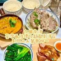 於荃灣海之戀吃飯,經過此店裝修簡潔明亮,於是試試,點了晚市二人套餐$199,免加一,性價比極高,兩人份量充足且包飲品 檳城火山骨 豬肉燜至軟腍入味,膠質豐富,醬汁帶點微辣,配白飯一流 檳城咖喱薯仔牛肋條 牛肋條份量不少,咖喱香濃微辣帶椰香,薯仔吸汁軟糯,同樣非常下飯 炭燒豬頸肉 肥瘦均衡,燒得外脆內嫩 藥膳浸菜心 菜心浸透當歸和藥材香氣,口感爽脆 兩杯熱飲:菜蜜及美綠 奉送飲品,前者清甜,後者香濃 整體而言,份量豐盛,環境風格舒適,$199二人套餐性價比超高 九號南洋 地址: 香港荃灣大河道100號海之戀商場2樓2037-2041號舖 #九號南洋#海之戀#荃灣西#荃灣美食#香港美食{{hket:campaign display="食飽過馬年"}}{{/hket:campaign}}