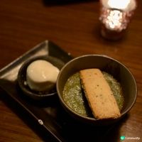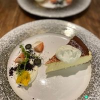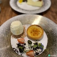 甜點方面同樣別具心思,抹茶焦糖燉蛋(港幣 98 元)頂層為焦糖薄脆片,底下是絲滑的抹茶燉蛋,抹茶的微苦回甘與焦糖的甘甜相得益彰。巧克力巴斯克芝士蛋糕(港幣 138 元)則採用本地品牌 Conspiracy Chocolate 的單一產地巧克力,焦化外皮下是軟糯蛋糕,再加一抹茉莉花香的忌廉,更有驚喜。