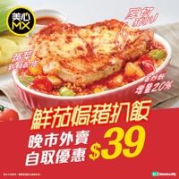 連鎖快餐店「美心MX」推出全新外賣自取優惠,於晚市時段外賣購買「鮮茄焗豬扒飯」只須$39一份 (原價$49),大大份厚切豬扒嫩滑多汁,香噴噴蛋炒飯足夠飽肚,又有新鮮蔬菜均衡營養,即日起至3月23日晚市外賣自取,優惠價$39只可歎到!
