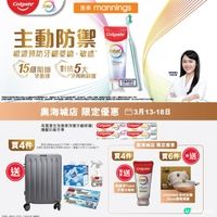 萬寧Mannings今期牙膏優惠,由即日起開始至3月19日完結,購買指定高露潔牙膏滿件,即可免費換領價值$481.7禮品,包括韓國Bokuk行李箱 (20吋)、詩樂氏防霉吸濕盒、詩樂氏除霉噴劑、寶礦力水特等,立即把握限時優惠,搶購指定高露潔牙膏吧!