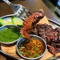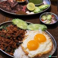 Siaw貴為米芝蓮指南新貴,近年人氣急升。由前米芝蓮泰菜大廚 Art Sinlaparkorn 主理,主打地道泰式街頭風味🌴不設訂位,想避開人龍記得早啲到! 招牌「香辣打拋葉炒豬肉碎($88)」做得幾出色,用咗紅、白打拋葉加多款辣椒、蒜頭同香料,即炒夠晒鑊氣,豬肉又夠惹味,加少少魚露食更香。唯一係煎蛋邊位唔夠焦,但味道仍好好。 「泰式燒和牛柳($188)」嘅牛肉燒得恰到好處,軟嫩多汁,配酸甜微辣嘅醬汁非常開胃。 「沙嗲雞($58)」同「燒豬頸肉($78)」則正常發揮。「飛天通菜($68)」可走辣,調味唔重但略油。 「熱情芒果冰沙($58)」甜酸清爽,個人覺得偏甜,但配辣嘢適合不過! 𝘖𝘷𝘦𝘳𝘢𝘭𝘭: 7.5/10 服務費: yes ┈┈┈┈┈┈ ⋆ ┈┈┈┈┈┈ Siaw 📍香港尖沙咀赫德道8号地铺 #香港美食#尖沙咀美食#米芝蓮推介#泰國美食#香港泰國菜