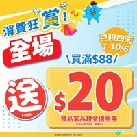 ‧ $20現金優惠券使用詳情及細則請參閱券上資料或店內宣傳資料。