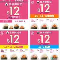 ▼即睇「$12飯糰優惠」每日款式▼