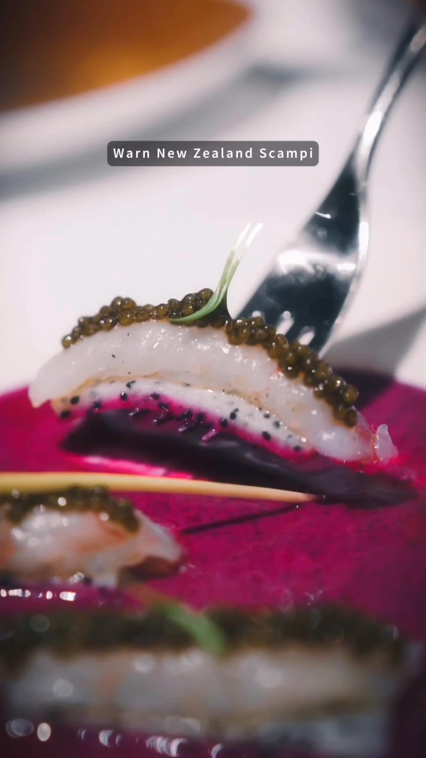 另一個前菜比較罕見,用意大利進口的頂級布拉塔芝士,外層煙韌,內裡流心幼滑。雅枝竹經炭火烤至焦香,淋上自家煉製的麻辣紅油,灑上花椒和芝麻。冰凍滑順的布拉塔遇上麻辣辛香的雅枝竹,冷熱交融、麻香與奶香在舌尖共舞。