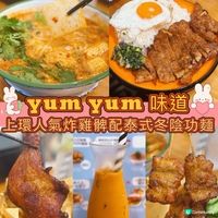 🏠 yumyum 味道 記得上環有一間好出名嘅餐廳,專做東南亞嘅菜式,今次早啲去排隊,真係好受歡迎啊 生炸雞髀冬陰功金邊粉 $86 呢個係套餐價,加咗嘢飲青檸梳打。入面既麵條除咗金邊粉,仲可以揀粉絲、米粉、河粉等。金邊粉幼身掛汁,配菜就有豆卜、菇菌、芽菜、蔥花等,冬陰功個湯底好濃,味道酸辣好開胃。生炸雞髀就另上,雞髀好大隻,外皮炸得酥脆,入面雞肉都好香口,啖啖肉。再加埋杯清爽嘅青檸梳打,正好 越式香茅豬扒蛋飯$71 另一款套餐就叫咗越式香茅豬扒蛋飯,嘢飲改叫泰式奶茶。越式香茅豬扒蛋飯既豬扒又係好大份,不過已經切開咗十幾件方便食用,豬扒肉質軟淋,加埋白飯同埋蔥油一齊食,香口無比;當然仲有粒煎得香脆嘅太陽蛋,蛋黃流心,加埋一齊食好惹味。 再飲埋香濃嘅泰式奶茶,真係好有東南亞風味。 泰式炭燒沙爹豬肉串$65 豬肉串燒一共有四串,外面少少脆口,肉質肥瘦適中偏甜口,加埋美味嘅沙爹醬就啱啱好 #冬陰功金邊粉#東南亞菜#越式香茅豬扒蛋飯{{hket:campaign display="長隆放電假期"}}{{/hket:campaign}}#打卡美食#ucreator
