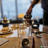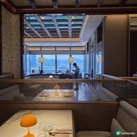 餐廳裝潢由屢獲殊榮的SLD(梁志天設計集團)打造,靈感源自中式府邸的門廊。室內光線充足,營造出如玻璃溫室般的透明感。最吸睛的是入口處的鳥籠藝術裝置,配合酒紅色與藍色的活力色調,完美融合傳統美學與現代簡約。