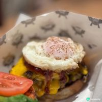 雙重芝士漢堡:以超粗磨和牛漢堡排煎至金黃焦香,配雙層車打芝士、新鮮番茄與爽脆生菜