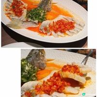 主菜方面延續了粵菜的根基,並巧妙融入西式技法與多國元素 。例如「蒜香牛油焗大花蝦」($168/三隻)創新地以氈酒(Gin)取代傳統紹興酒提香,添上一縷清新草本氣息;