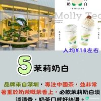 茉莉奶白2021年創立,現時在深圳已有近40間分店。店家主打東方茉莉茶,提供鮮奶茶、雲頂奶茶、芝士純茶及鮮果茶系列。經典招牌飲品「茉莉奶白」茶味清香,另外亦有配上忌廉雪頂的「一朵茉莉花」;去年店家推出開心果芝士奶蓋,配合各款茶底,開心果控必試!