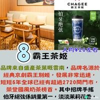 霸王茶姬同樣是近年的新興茶飲店,來自雲南,主打新式東方原葉鮮奶茶,全球門店超過700間。經典「伯牙絕弦」以茉莉雪芽作茶底,茶味芳香,平均一年賣出超過2000萬杯。「春日桃桃」以白桃烏龍製作沙冰茶底,配搭手打雲呢嗱奶茶雪頂,清新香甜;「浮生夢媞」以葡萄果肉配上茉莉雪芽及芝士奶蓋,鮮爽幽香。