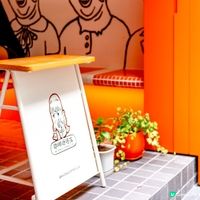 由電台DJ阿正創辦的「咖啡呀唔該」以橙白相間的設計營造出80年代的復古風格,而且更特地訂製了橙色的意大利老牌 La Marzocco 咖啡機,非常有特色。咖啡店亦有一道畫上很多搞鬼人物的特式牆,打卡一流!