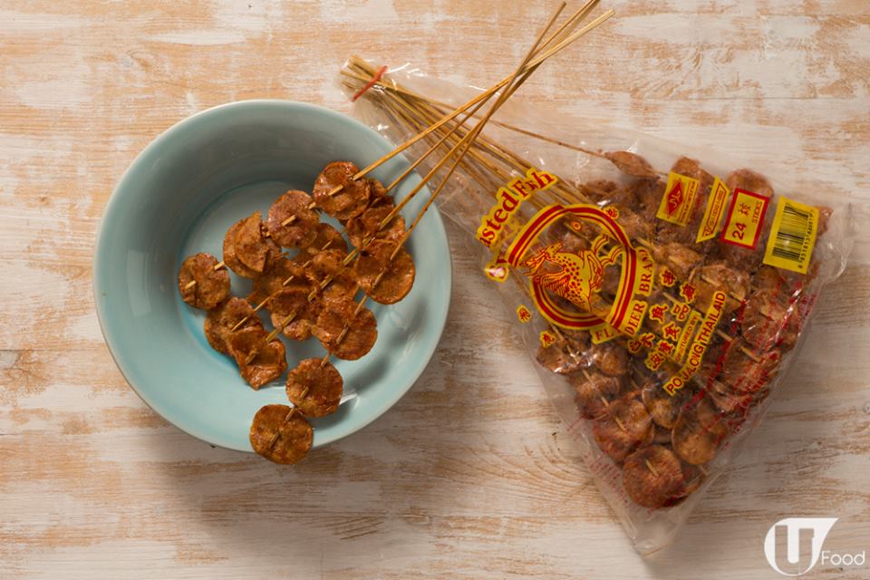 沙嗲魚串堪稱懷舊零食之最!廿幾串紥埋一齊,成把扇咁,細個拎住佢,逐串逐塊食,好滋味!零用錢唔夠,又可以逐枝散買,大約 5 毫子串。細個時食覺得真係有魚味(其實係腥味),面層令立立黐立立,食落甜甜辣辣仲有少少魚味(細個時覺得係魚味)。咁古舊(口既)零食估唔到而家仲有,呢款叫來自泰國的「波作隆雙魚牌沙爹魚串」,一包有 24 枝,唔知係時代變咗,配方改咗,定係人大咗,口味變咗,而家食落覺得有啲腥同硬,仲有啲羶味㖭!情懷搭夠啦!